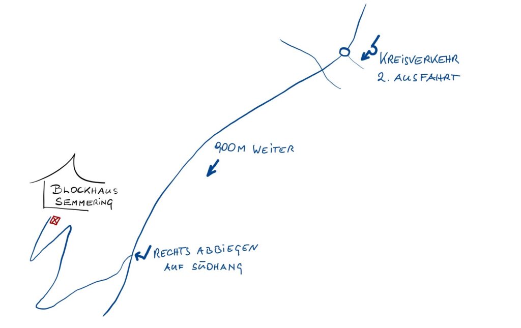 Wenn Sie mit dem Auto aus Wien oder nördlich davon anreisen, dann fahren Sie die Südautobahn A2 bis zum Knoten Neunkirchen und von dort auf die Schnellstraße S6. Hier kommen Sie nach der Abfahrt Gloggnitz durch 2 kurze Tunnel und direkt anschließend nehmen Sie die Abfahrt „Semmering“. Rechts weiter und den Serpentinen für 4,5km folgen bis zum Kurort Semmering. Am Kreisverkehr nehmen Sie die 2te Ausfahrt. Nach 900m die Hauptstraße nach rechts verlassen. Über eine kleine unscheinbare Brücke erreichen Sie den Südhang. Jetzt noch 3 Kurven bis zur Ankunft.